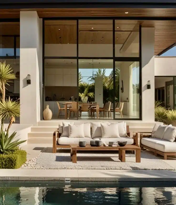 Este estilo prioriza la luz natural, espacios abiertos y conexión con el entorno. Se usa concreto aparente, vidrio templado y tonos neutros. Son comunes en casas de lujo modernas en zonas urbanas mexicanas.