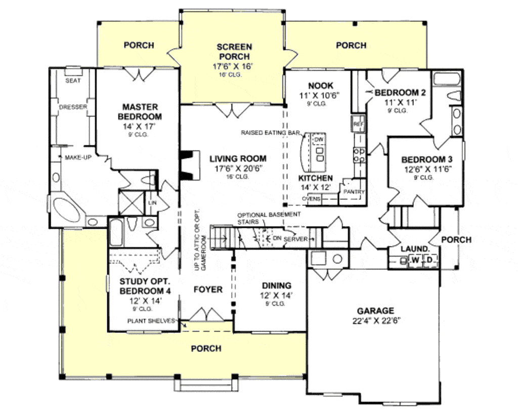 planos de casas de 1 piso y 4 habitaciones, sala y cocina