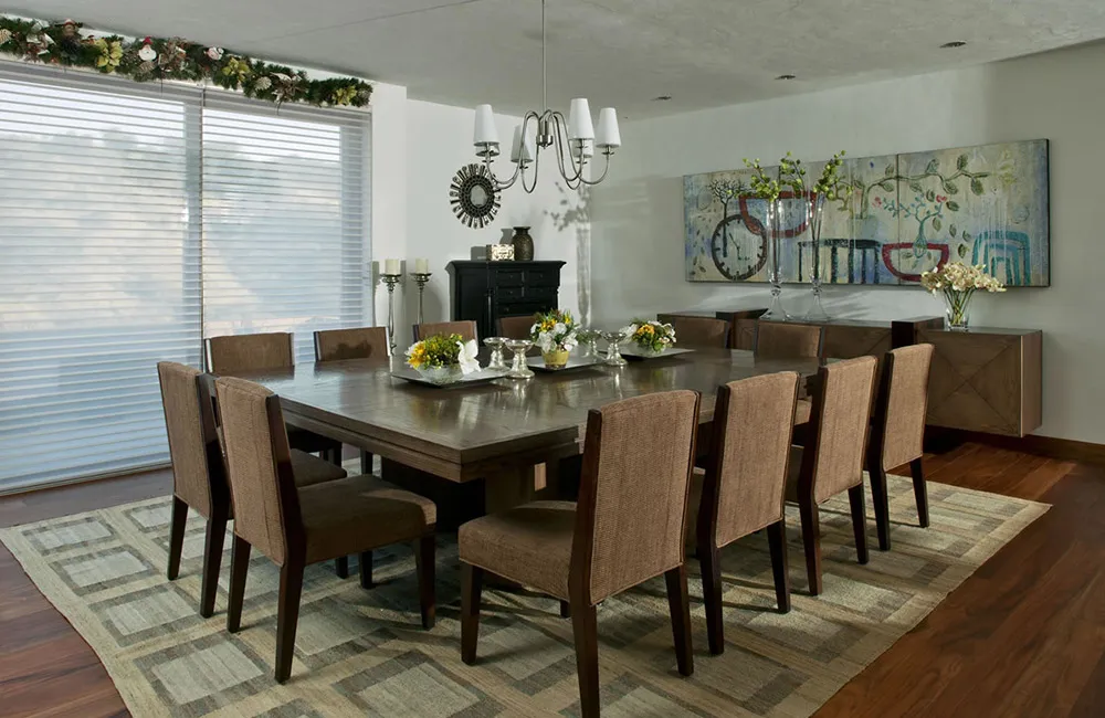 Para determinar el tamaño adecuado, mide la longitud y el ancho de la mesa que estás considerando. Luego, resta 2 metros tanto de la longitud como del ancho del área disponible, asegurándote de dejar un metro de espacio libre a cada lado. El resultado de esta resta te dará el tamaño máximo recomendado para tu mesa de comedor.